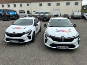 Pour finir, mai rime avec renouvellement ! Nous vous présentons nos nouvelles clio 5 toutes neuves et fraichement floquées !
